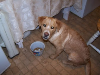 …well, I’ll be..The Giz is still hungry! Wow, how is that possible? He posed for a picture for me while eating his second scoop of dog food.