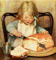 - Allow loaves to rise until they have doubled in size, usually for about an hour. During this time preheat your oven to 350ºF. When the rise has completed, bake loaves in the oven for 25-30 minutes. The loaves are done when they are nicely browned and have a hollow sound when you tap them. Once done, place the loaves still in the pans on a wire rack for 5 minutes then turn the loaves out onto the wire rack to cool completely. If the loaf wants to stick in the pan, gently run a butter knife around the perimeter of the pan and the loaf should release. I have always read that the loaf will be better if you allow it to cool completely before you slice it, but who can wait that long?? Cut a piece with a bread knife, spread on some real butter and enjoy. Be sure to save the “butt piece” to place back against the loaf to keep the bread from drying out. Store in a plastic bag in the refrigerator once completely cooled. [MONEY-SAVING NOTE: I save hot dog and hamburger bun bags and twist ties in which to store my homemade loaves.