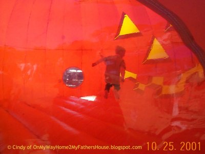 Dorie,Why, yes, that is a giant pumpkin moon bounce! Cody was thrilled that day to get to jump for a few minutes all by himself. How times have changed, though! Today he was quite pleased playing baseball – 4 games – and his team won the tournament! I still think he would have jumped in a moon bounce, however, if there had been one at the park…Blessings!Cindy <