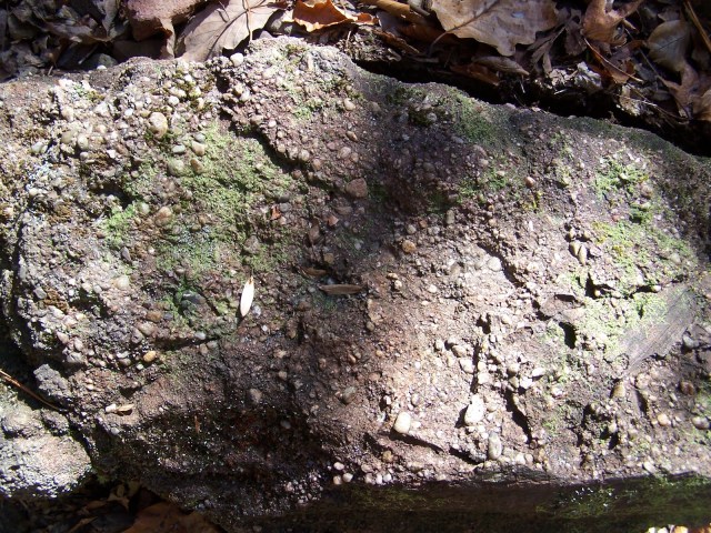 Notice the river rocks that are a part of this rock, as well as the leaf prints and the piece of petrified wood. This was located at the base of this massive stack: